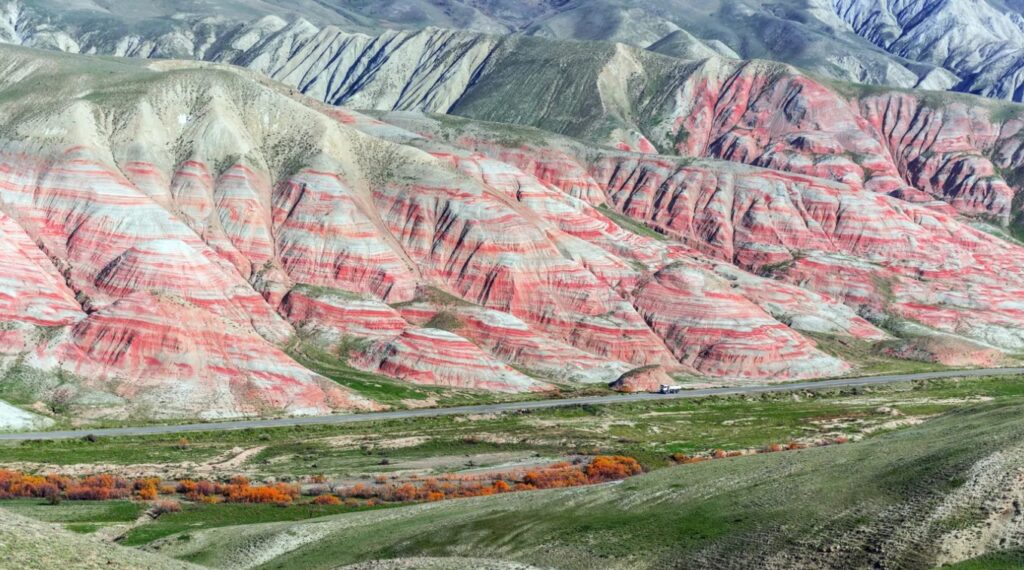 - velké rozdíly v nadmořské výšce – zatímco nejvyšší hora měří 4485 m.n.m., nejnižším bodem je Kaspické moře u pobřeží, která má výšku -28 m.n.m. Může se Vám tak stát během jarních a podzimních měsíců, že během jednoho dne se dostanete z letních 20 °C na 0 °C obklopeni všude sněhem, pokud pojedete od moře do hor – např. do nejvýše položené vesnice Xinaliq ve výšce 2 344 m.n.m.