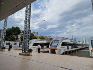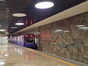 - Linka E2 – propojuje největší město u Baku – Khirdalan – s širším centrem v Baku (= k metru, od října 2025)
