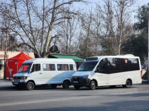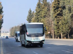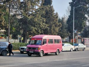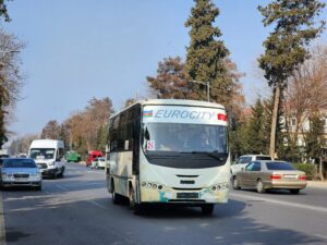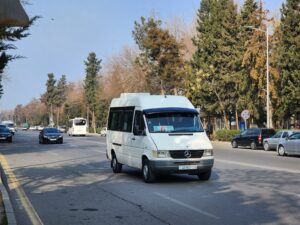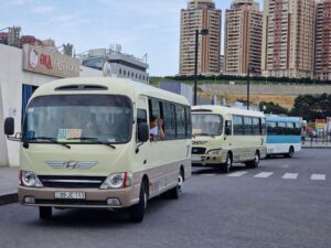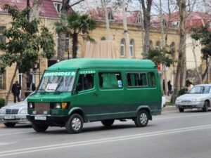- Sheki (65 000 obyvatel) – cca 50 mikrobusů (zejména Mercedes-Benz T2, GAZy-3221 a několik málo PAZů-3205, v březnu/dubnu 2026 by mělo dojít k obnově za moderní autobusy