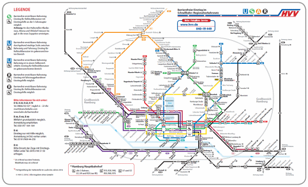 Systém S-Bahn doplňuje 15 linek příměstských a regionálních vlaků, integrovaných v sítí HVV.